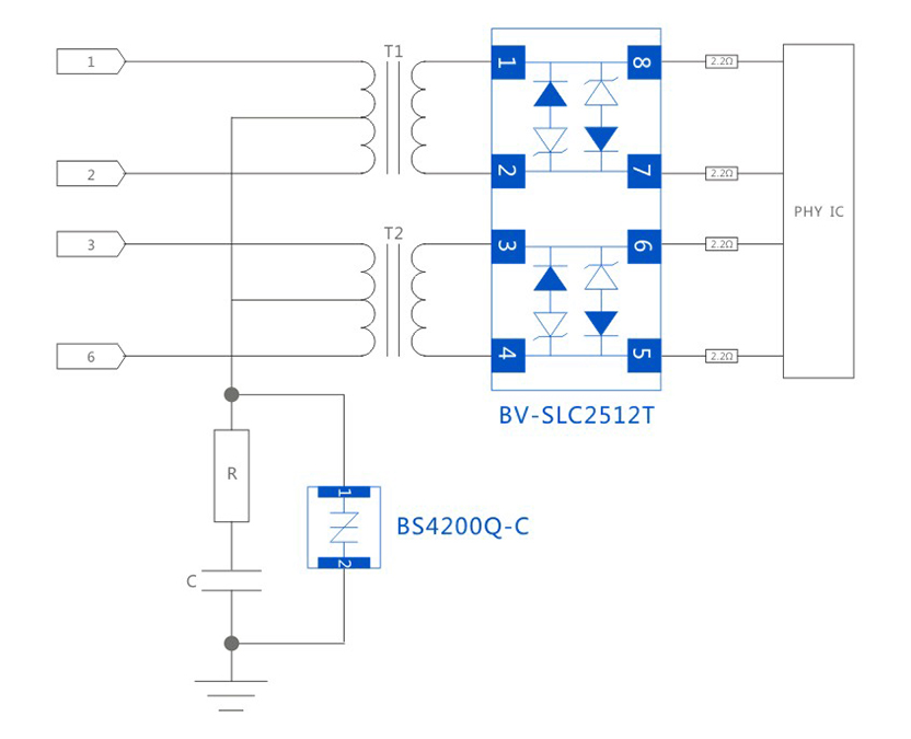 RJ45百兆DFN +2512 10/700μs CM/DM 6KV
