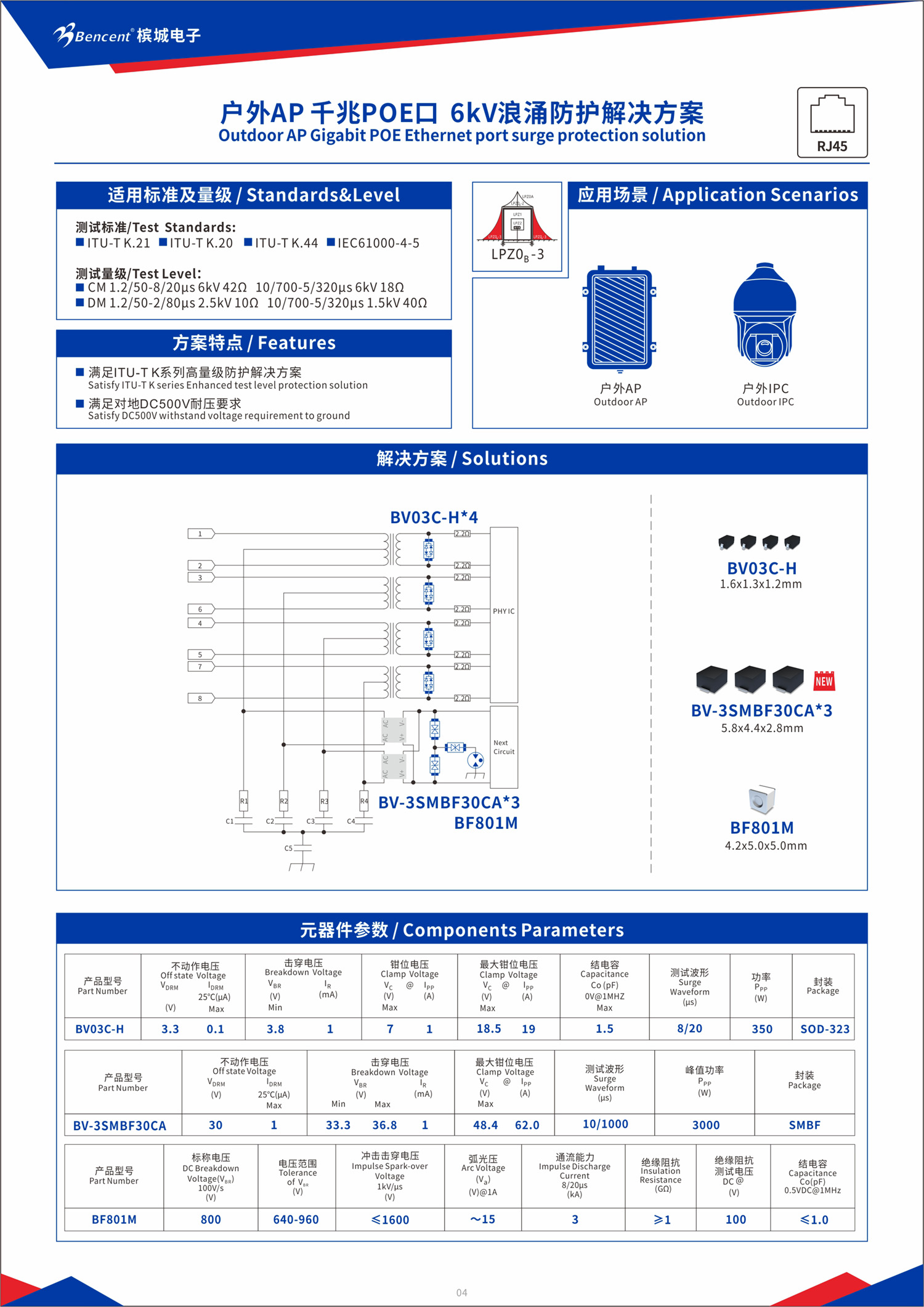 針對網口的浪涌防護,我們帶來了SMBF系列產品,實現小體積,大通流的需求: