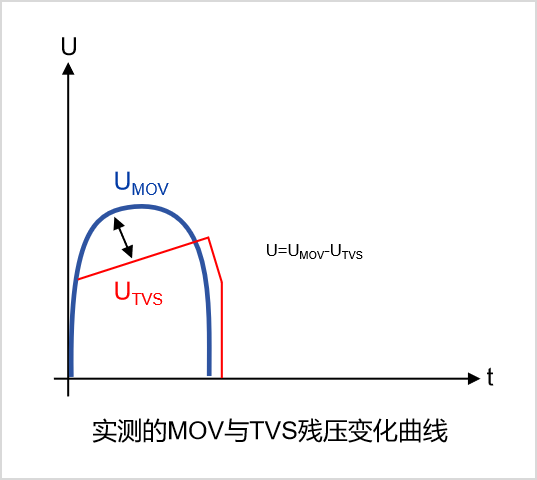 以浪涌1.2/50us-8/20μs 2Ω,6KV 3KA浪涌測(cè)試標(biāo)準(zhǔn)為例。假設(shè)MOV殘壓在150V,TVS殘壓期望控制在90V(圖2),TVS的IPP 只有700A。假設(shè),鉗位電壓的脈沖寬度40μs(實(shí)測(cè)),電感的電流變化40μs內(nèi)應(yīng)該小于700A,