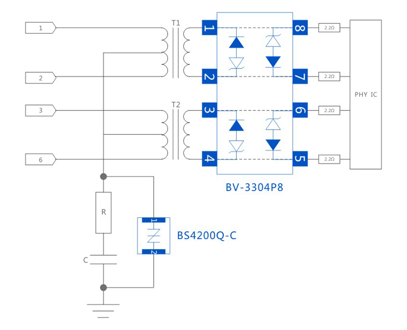 RJ45百兆DFN+2512 10/700μs CM/DM 6KV