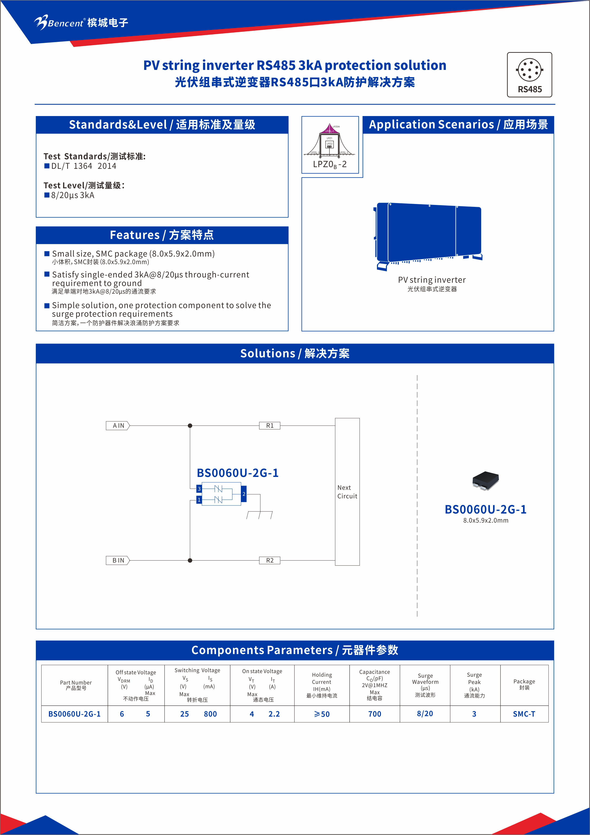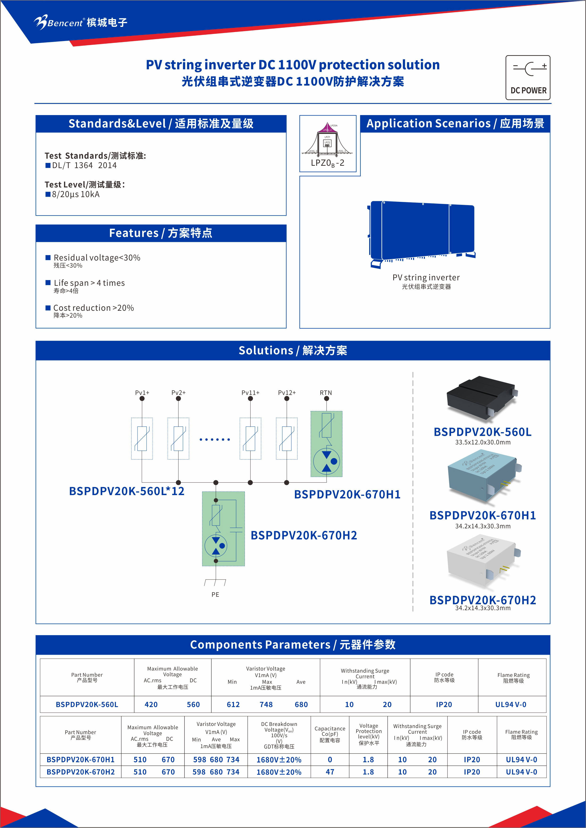 ? 光伏用DC接口解決方案BSPDPV20K系列——在降低成本的同時有效解決MOV的直流老化問題