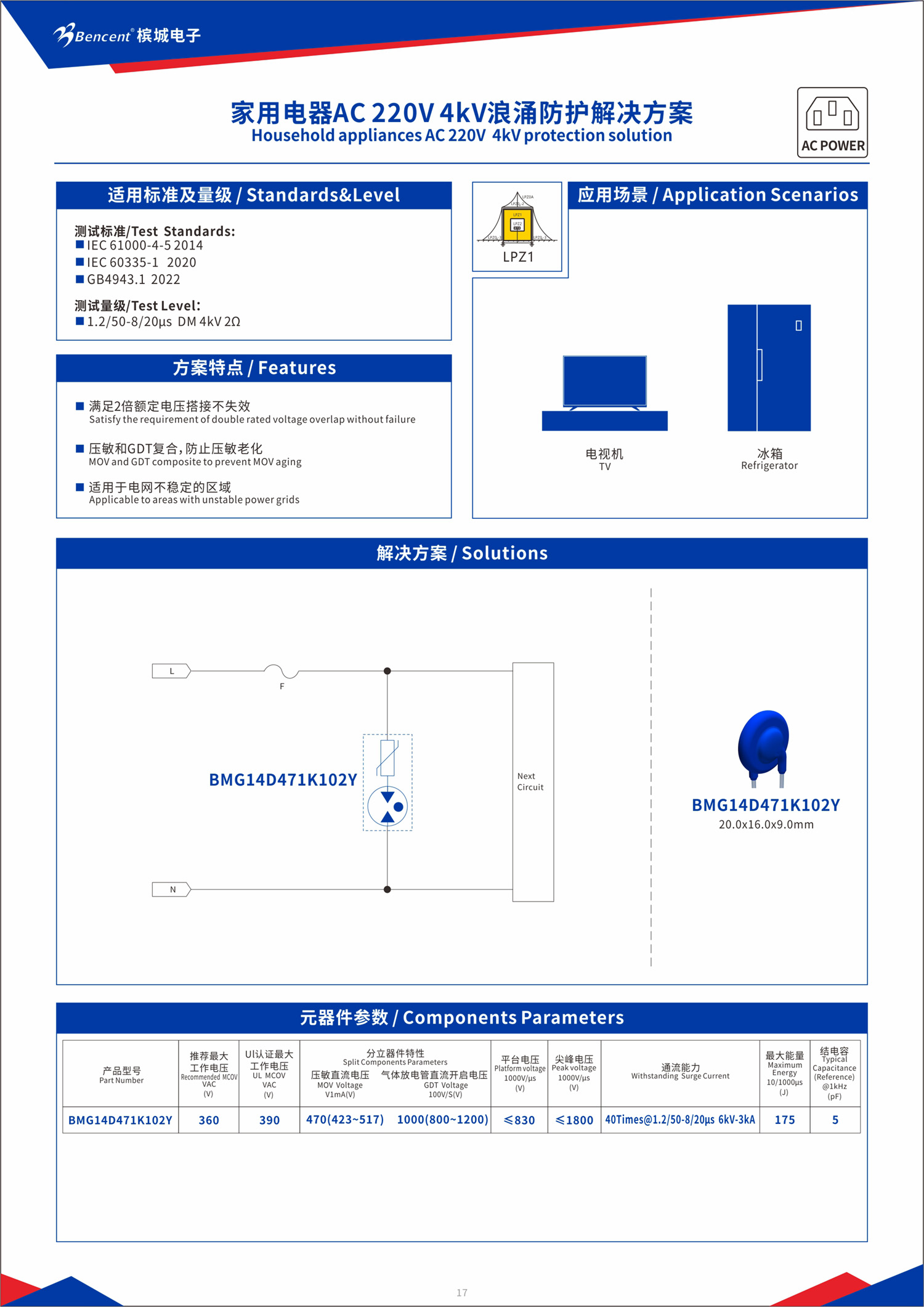 本次展會,針對電網波動較大的場景,我們帶來了MOV+GDT復合型器件: